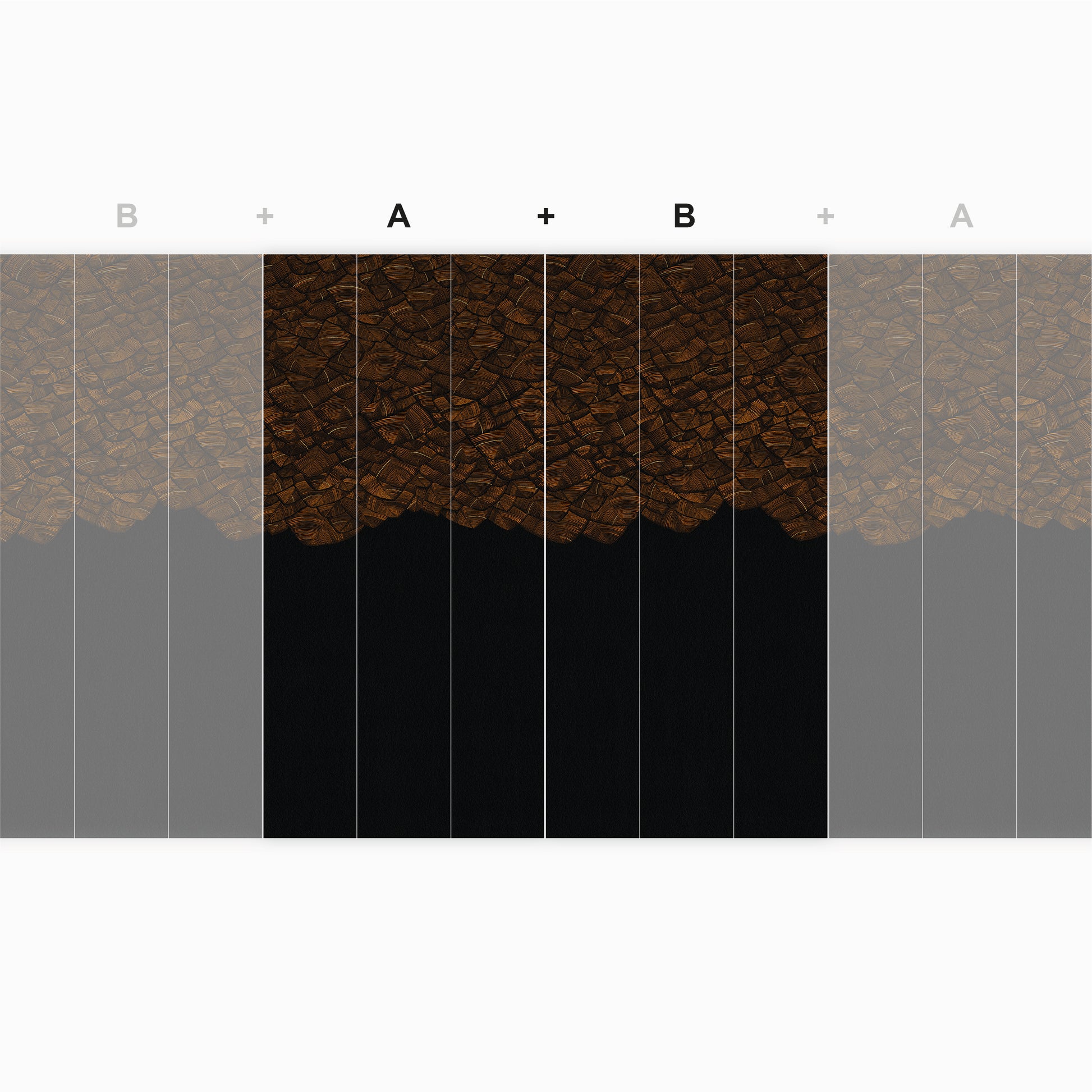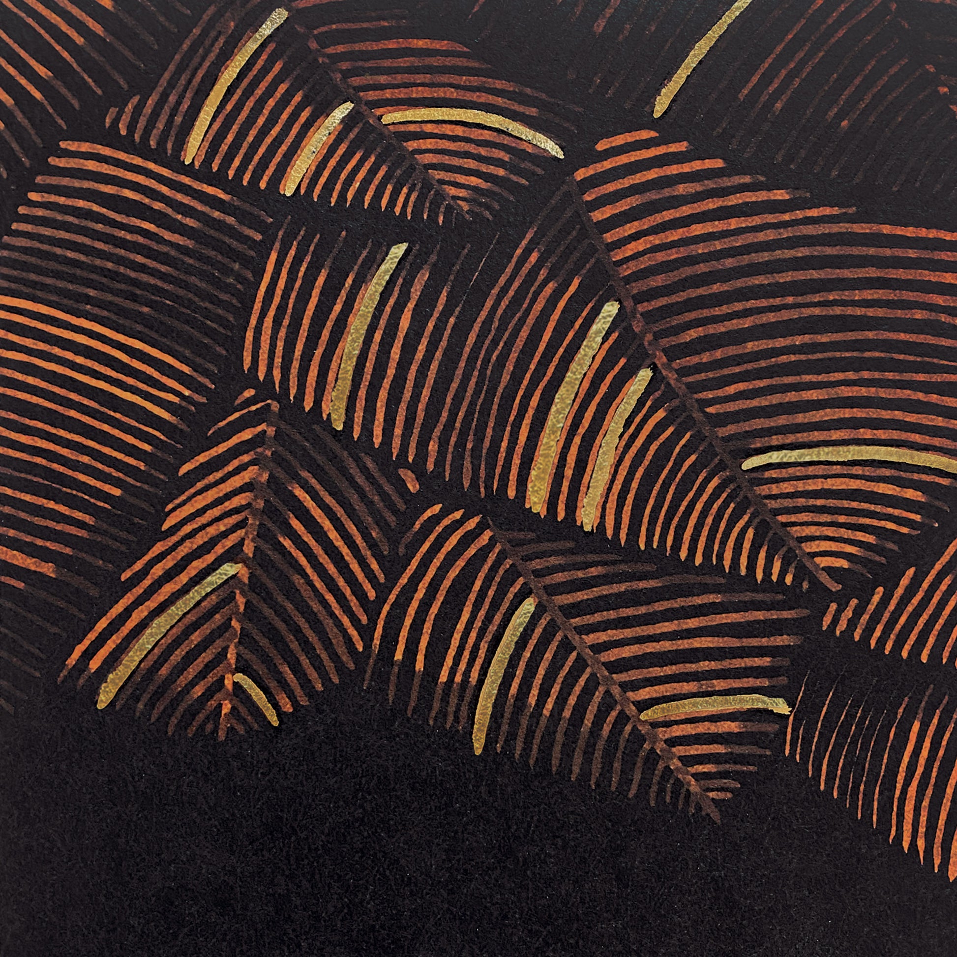 « Feuillu » est une forêt graphique dont le dégradé de couleurs apporte de la profondeur au décor. Ce tirage panoramique est réhaussé d'une dorure artisanale appliquée dans notre atelier parisien à la feuille de métal battu doré.